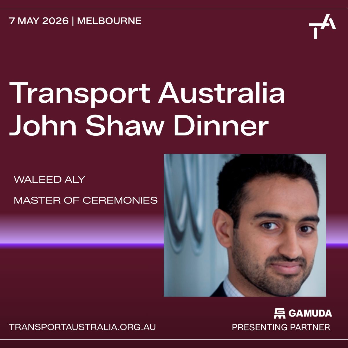With one month until the Transforming Transport Summit and John Shaw Dinner, we are thrilled to announce that renowned journalist and broadcaster Waleed Aly will serve as Master of Ceremonies at this year’s John Shaw Dinner.