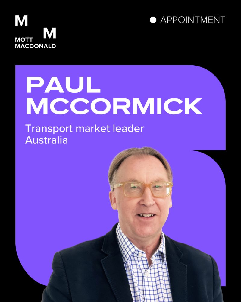 Paul McCormick has joined Mott MacDonald as transport market leader in Australia. |